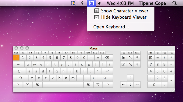 . - Now you have the input menu shown at the top right by your name. On the input menu choose the Maori keyboard.