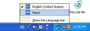 - Now in the language bar you can see the current language, which happens to be EN. Very nerdy, and they don't even relate to ISO 639 codes. Click on the little square that says EN and the list of available languages pops up. Now we can choose Māori (or English (New Zealand) if you went that route in step 4).